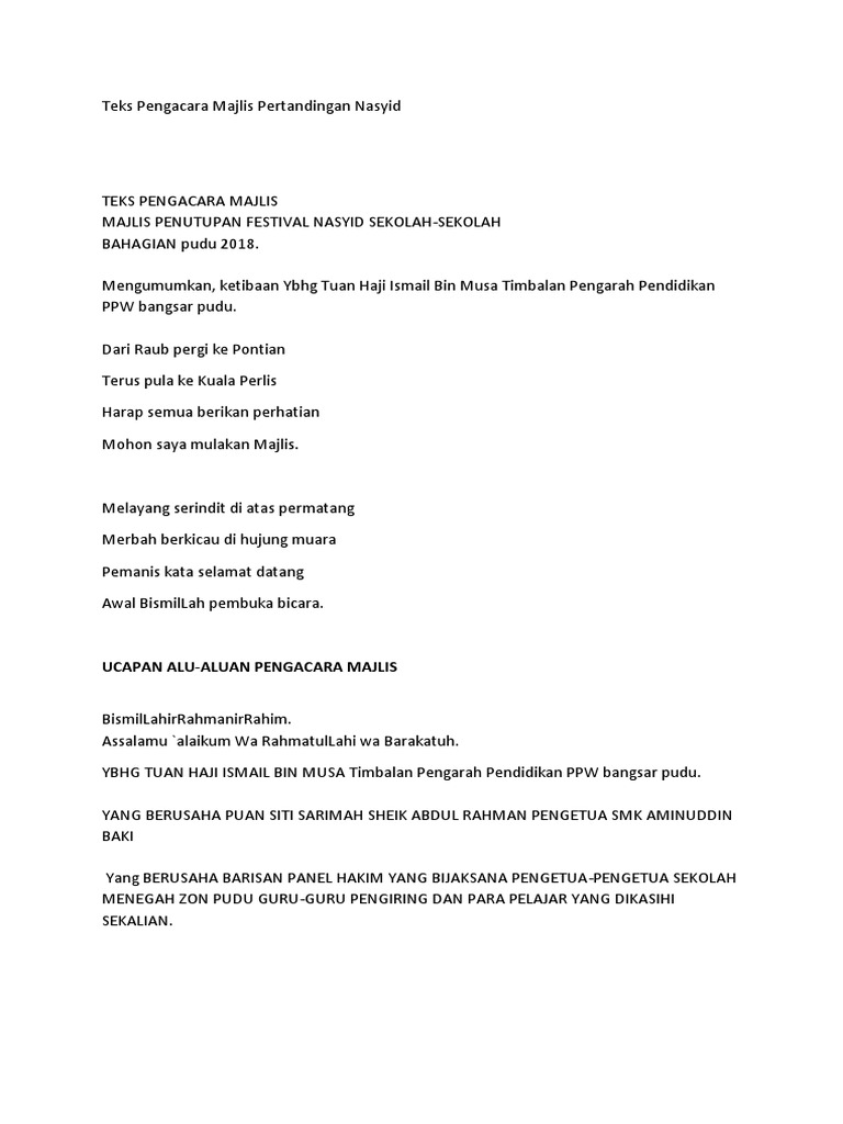 Teks Pengacara Majlis Pertandingan Nasyid Sek Men 2014 Mtq Pdf